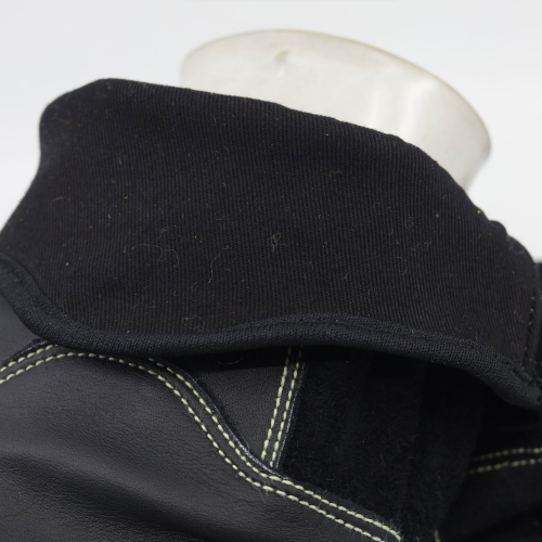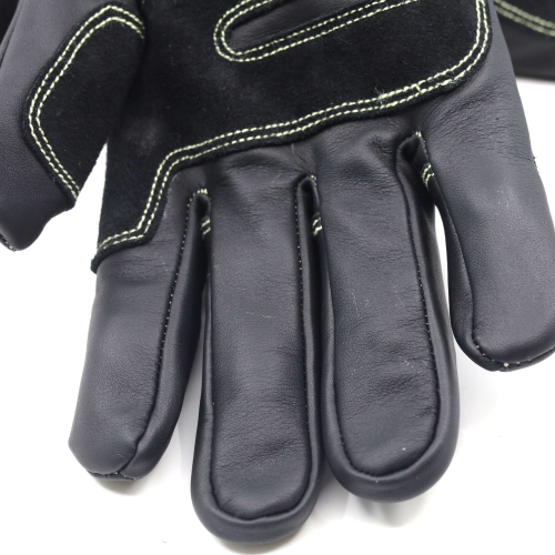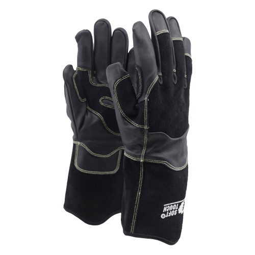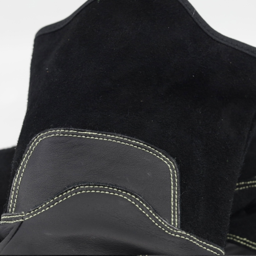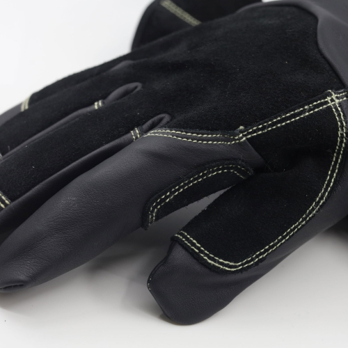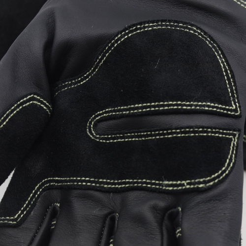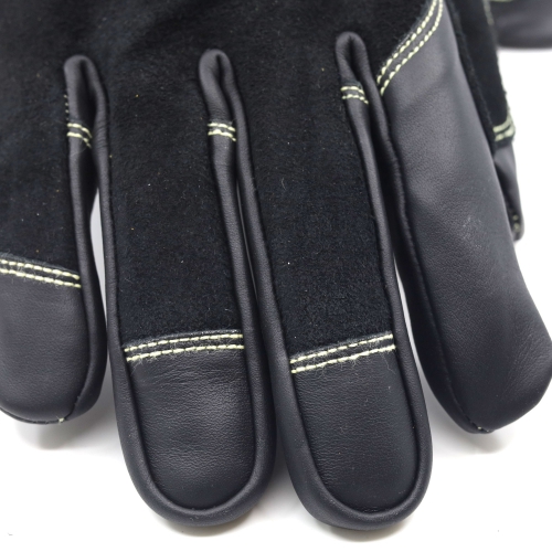 Svetshandske med skärskydd i premium nötnarvläder i innerhanden och över handleden. Ledade greppförstärkningar, ovanhand och 15 cm lång krage i nötspalt. Krage med integrerad dragsko. Pulsåderskydd i nötnarv. Borstat foder i Kevlar® inuti handsken som ger ett skärskydd i nivå D. Polyester/bomullsfoder i kragen. Alla sömmar i slitstark Kevlar®tråd. Ergonomisk design med vingtumme.