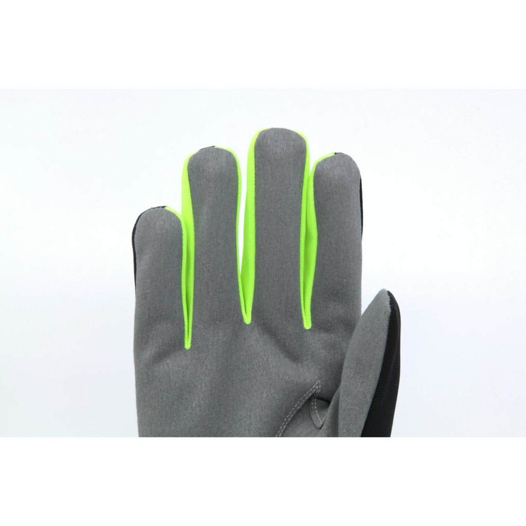 Monteringshandske sydd i Amara syntetläder med ovanhand i svart polyester. Detaljer i fluorescerande material. Handsken är förstärkt med helt pekfinger i syntetläder för bättre slitstyrka. Elastisk resår på ovanhanden för att handsken ska sitta bättre. Slip on model. Kromfri.