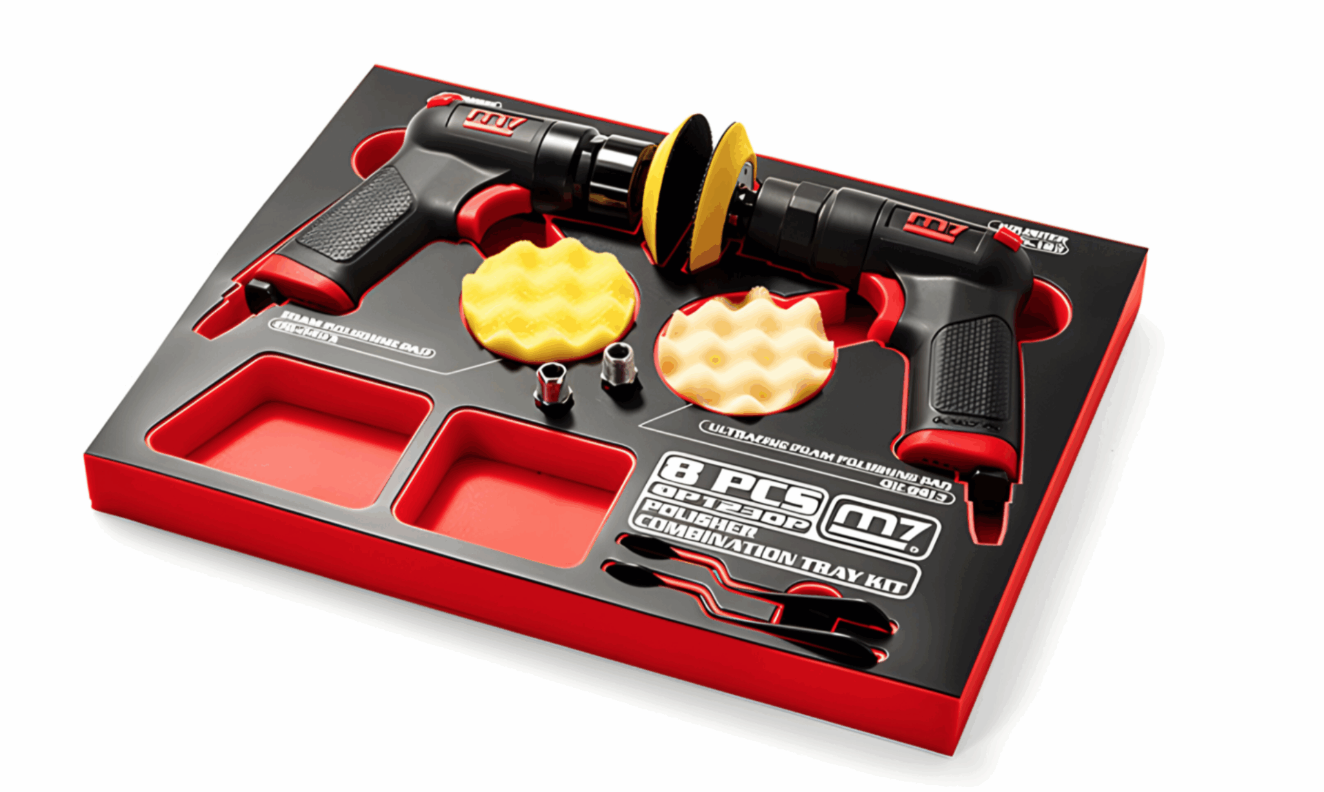Detta exklusiva polerpaket från M7 kombinerar två högpresterande tryckluftsdrivna pistolpolermaskiner i ett genomtänkt och snyggt set.