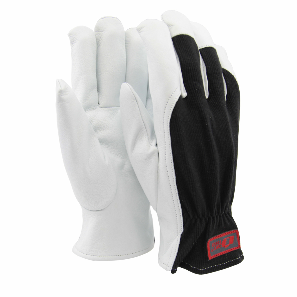 Monteringshandske i getnarvläder med svart, ribbat bomullstyg på ovanhand. Elastisk resår på ovanhanden för att handsken ska sitta bättre. Fingertoppsförstärkningen med helt pekfinger gör att handsken passar bra till enklare svetsarbeten. Handsken lämpar sig mycket bra till all slags monterings-, lager-, plockarbeten m m.