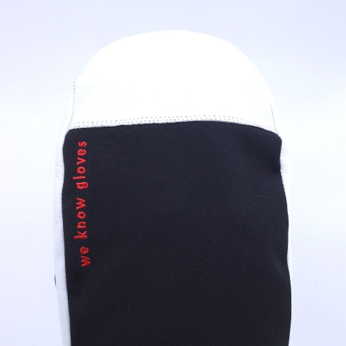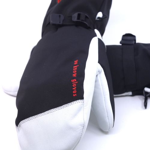 Skidhandske i tummodell sydd i getskinn i hela innerhanden, samt över fingrarna. Ovanhand i vattenavstötande softshell. I handsken sitter ett varmt, löstagbart fingerfoder i polyesterpäls. Kardborreknäppning samt spänne över vristen för att handsken ska sitta säkrare på handen.